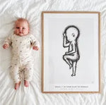 The Birth Poster is een reeks illustraties die je eraan herinnert hoe klein je baby was bij de geboorte. Het tijdloze kunstwerk is net zo groot als je baby was toen hij of zij ter wereld kwam. Als je baby 51 cm lang was, is de illustratie ook precies 51 centimeter groot. Onderaan de poster printen we de geboortegegevens van je baby – de naam, de lengte, het gewicht en de geboortedatum.