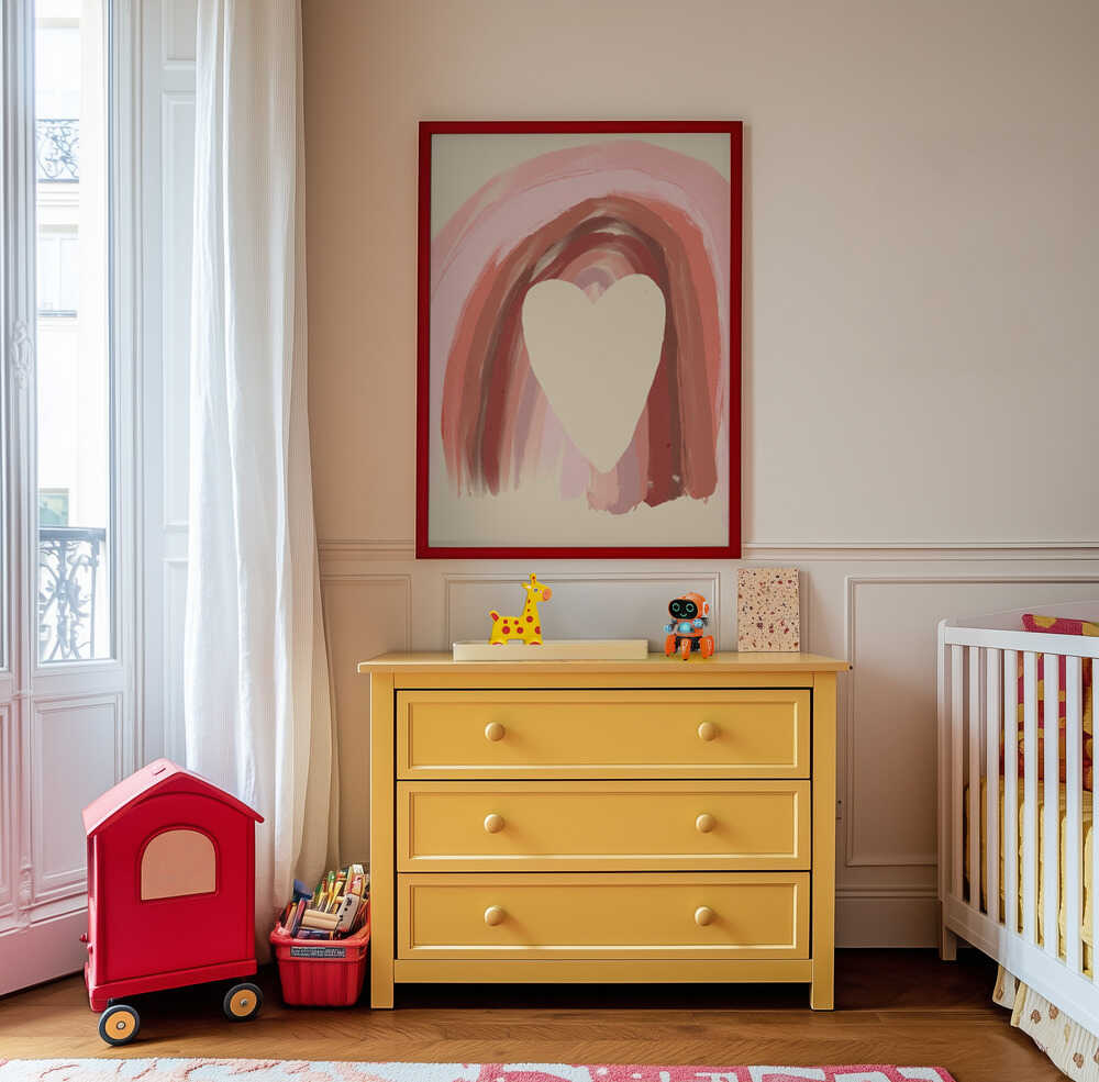 Breng een rustgevende vleug kleur in je interieur met deze zachte, dromerige wanddecoratie in roze en crèmekleurige tinten. Het minimalistische ontwerp en de evenwichtige kleuren zorgen voor een kalme, harmonieuze sfeer zonder de ruimte te overheersen. Ontworpen om zowel tijdloos als speels te zijn, past het perfect boven het babybedje, in een leeshoek of bij het bureau. Een warme en stijlvolle keuze voor de kinderkamer, babykamer of moderne gezinsruimte – en moeiteloos te combineren met Scandinavische woonstijlen en galerijmuren. Gedrukt op mat papier van museumkwaliteit dat jarenlang zijn kleur en detail behoudt.