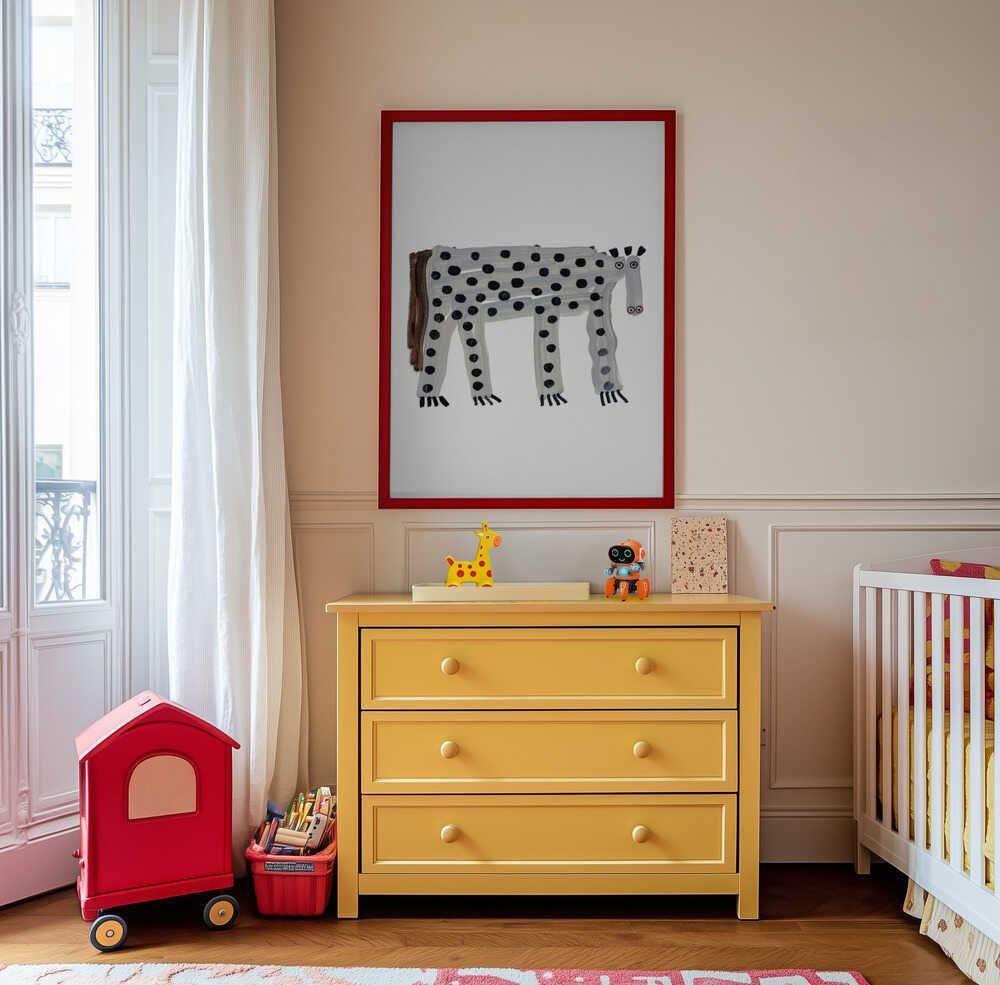 Breng een vleugje speelsheid en karakter in je interieur met deze unieke wanddecoratie van een handgeschilderd gevlekt wezen in tinten zwart, wit en bruin, met een charmant abstract ontwerp. Het minimalistische ontwerp en de evenwichtige kleuren zorgen voor een kalme en harmonieuze uitstraling zonder de ruimte te overheersen. Ontworpen om zowel tijdloos als vrolijk te zijn, past het perfect boven het babybedje, in een leeshoek of bij het bureau. Een speels en artistiek kunstwerk voor de kinderkamer, babykamer of moderne gezinsruimte – en moeiteloos te combineren met Scandinavische woonstijlen en galerijmuren. Gedrukt op mat papier van museumkwaliteit dat jarenlang zijn kleur en detail behoudt.